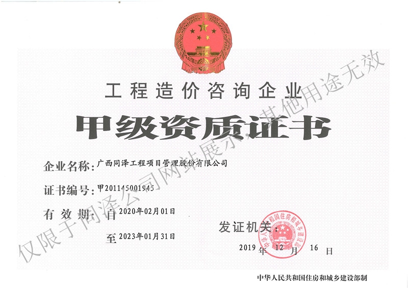 工程造價(jià)咨詢(xún)資質(zhì)甲級