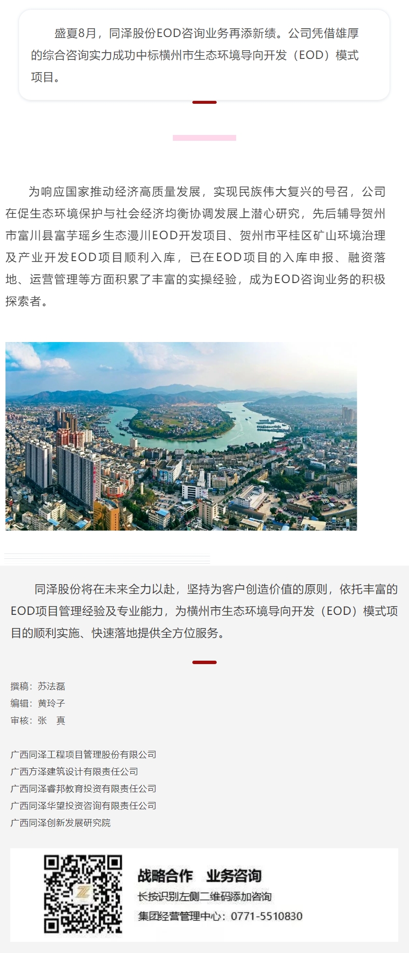 中標資訊 | 同澤股份成功中標橫州市生態(tài)環(huán)境導向開(kāi)發(fā)(EOD)模式項目